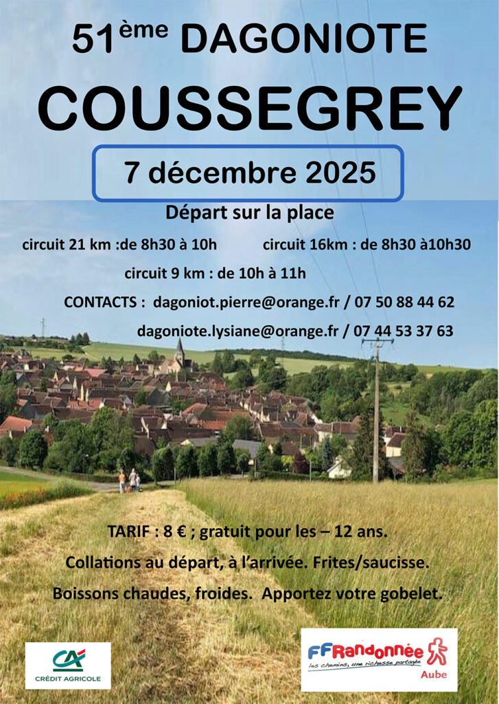 Rendez-vous sur le parking Edouard Herriot à 7h30 pour départ à 7h45 ou à 8h45 sur le parking de la mairie d’Essoyes.