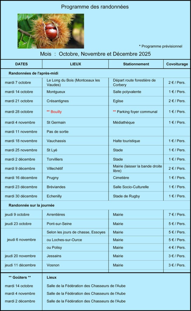 Programme des Randonnées