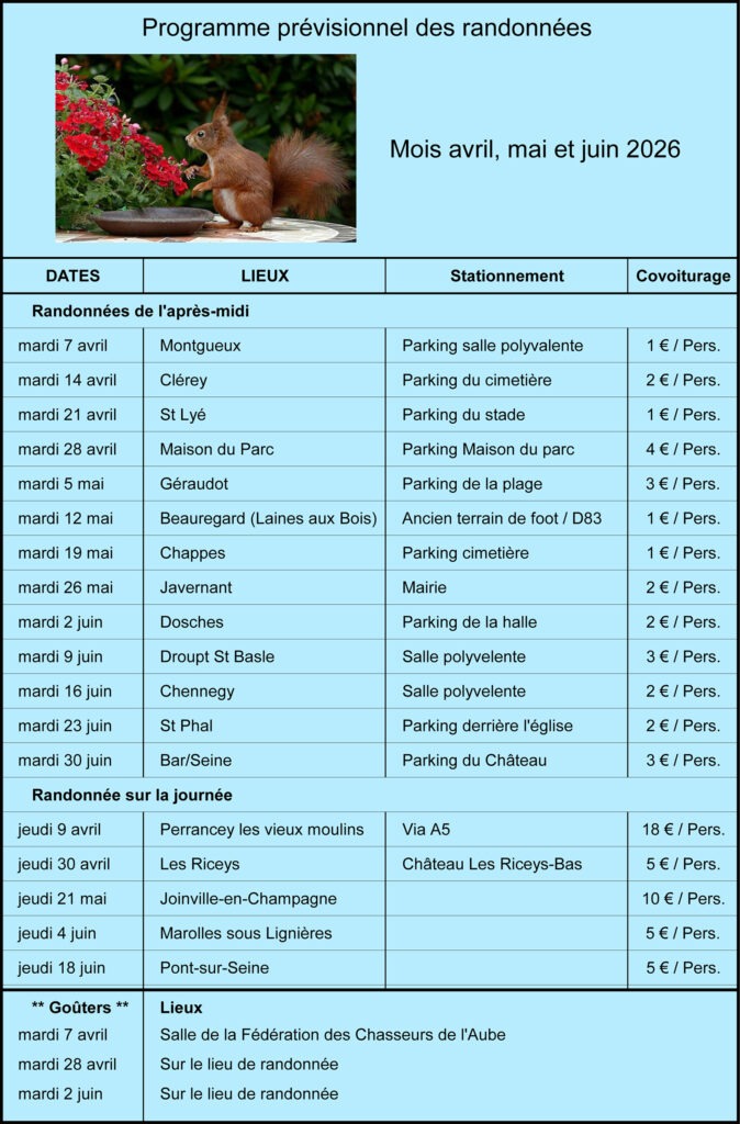 Mardi 7 avril 2026, un goûter sera offert sur inscription à l’issue de la randonnée. Si vous souhaitez y participer, vous devez impérativement vous inscrire en ligne.