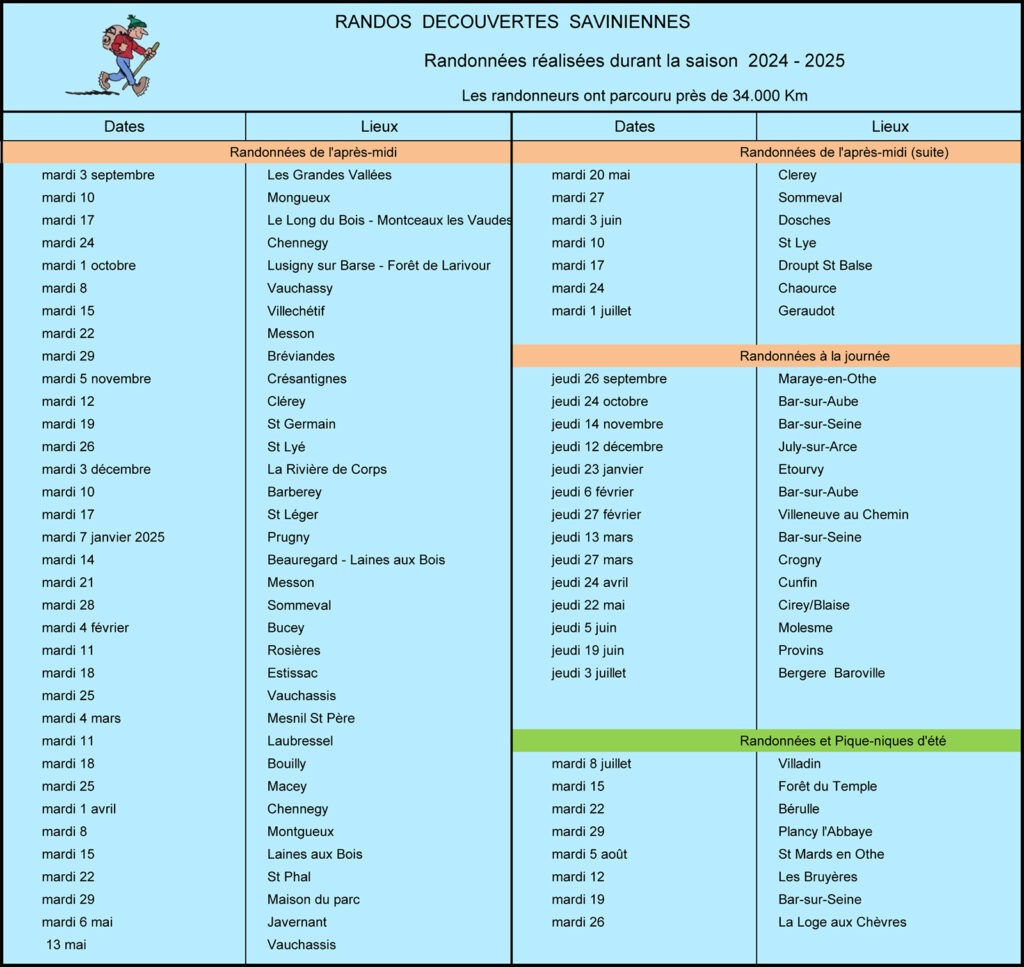 Dans cette page, vous trouverez les tableaux des randonnées réalisées et des photos de groupe.