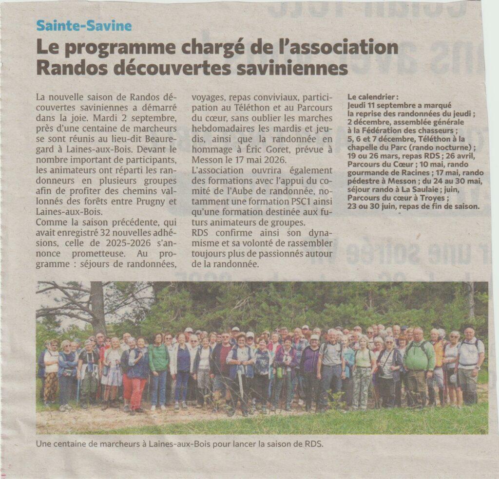 L’association Randos Découvertes Saviniennes ( RDS), qui compte cent huit adhérents, a tenu récemment son assemblée générale.